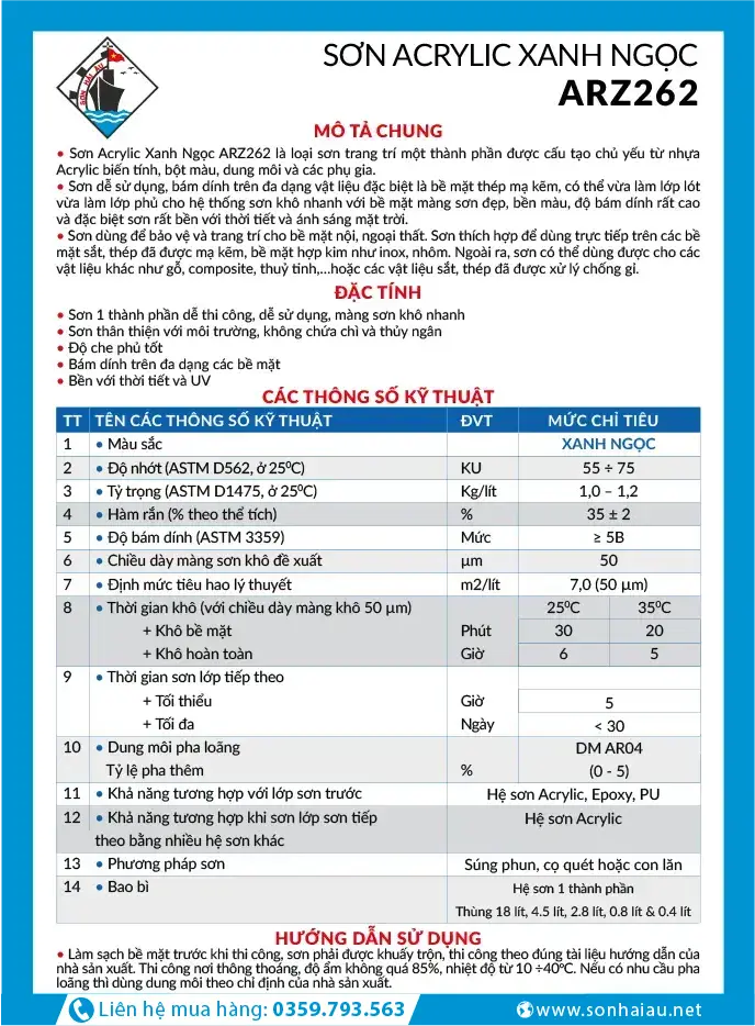 Sơn Acrylic Xanh Ngọc – ARZ262