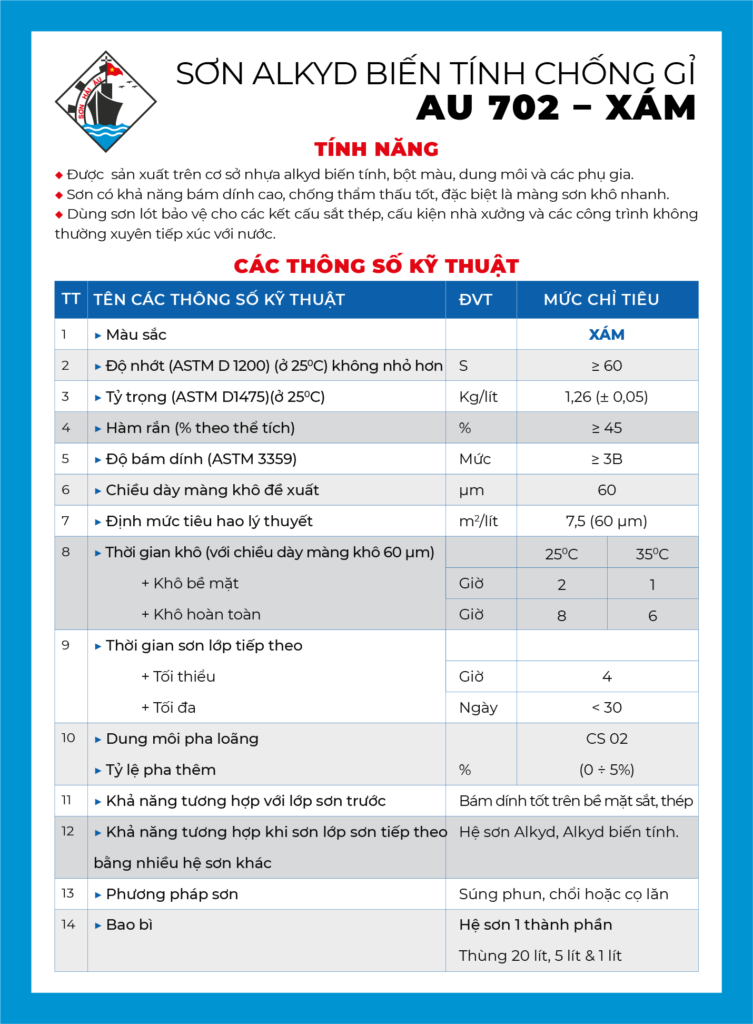 - Được sản xuất trên cơ sở nhựa alkyd biến tính, bột màu, dung môi và các phụ gia.