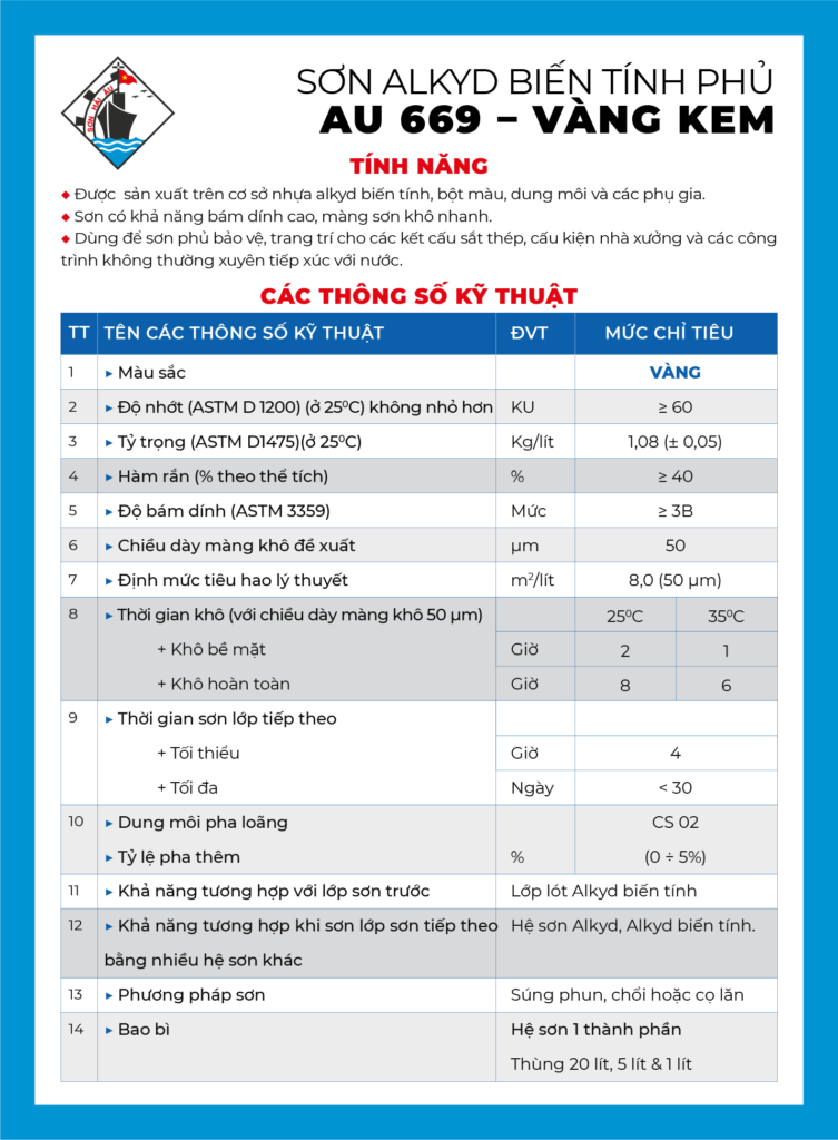 - Được sản xuất trên cơ sở nhựa alkyd biến tính, bột màu, dung môi và các phụ gia.